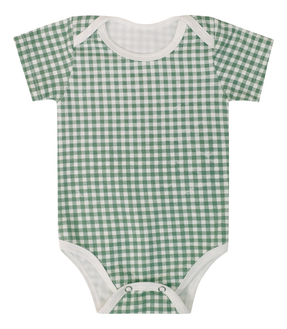 BODY BABY UNISSEX MANGA CURTA XADREZ VERDE FAMÍLIA - COR COM AMOR