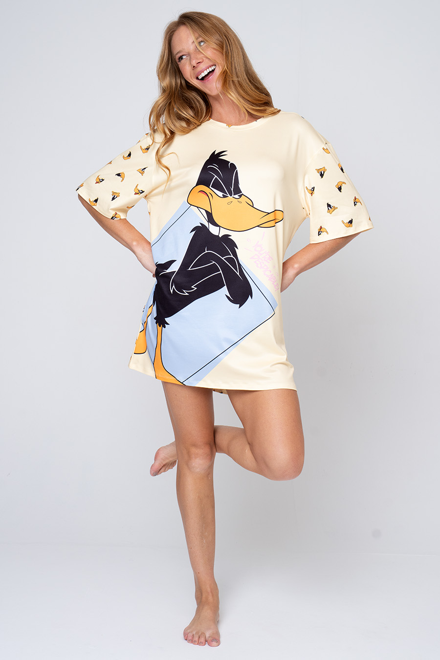 A coleção inspirada no universo Looney Tunes celebra o tempo do brincar como forma de aliviar o estresse e resgatar a leveza do dia a dia. Em um cenário de rotinas intensas, a proposta valoriza a diversão, o humor e a criatividade, trazendo personagens clássicos em composições coloridas e cheias de movimento. Uma coleção que convida a desacelerar, sorrir e aproveitar momentos de descontração com conforto e espontaneidade. Camisola confeccionada em malha touch, com toque extremamente macio e confortável. Possui modelagem ampla, mangas curtas e estampa frontal do personagem Patolino em destaque, trazendo um visual divertido e descontraído. Ideal para noites leves e momentos de descanso, une conforto, praticidade e o charme dos personagens clássicos Looney Tunes. Coleção Licenciada Oficial Warner Bros. |
