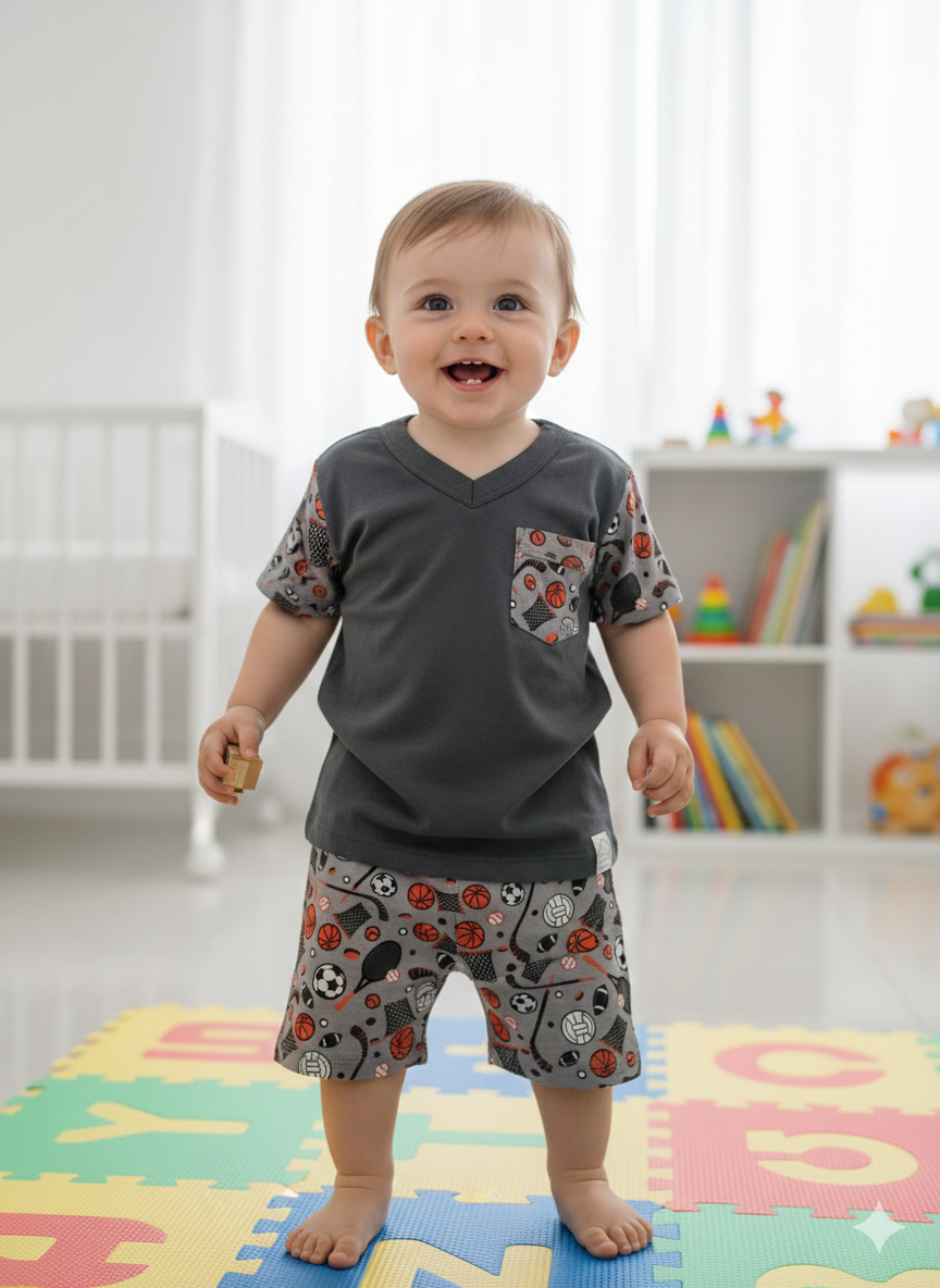 Conforto e diversão para as noites do bebê! Este pijama masculino baby é confeccionado em algodão, garantindo toque macio, leveza e ótima respirabilidade para a pele delicada dos pequenos. O conjunto é composto por camiseta de manga curta com modelagem confortável e detalhe de bolso frontal, que traz charme extra ao visual. O short possui cós elástico, oferecendo ajuste suave e liberdade de movimentos. A estampa divertida deixa o pijama ainda mais alegre e encantador, ideal para acompanhar o bebê nos momentos de descanso e sono com muito estilo. Estampas sortidas. A compra é realizada normalmente pelo site. Após a confirmação do pedido, nossa equipe entrará em contato via WhatsApp para apresentar as estampas disponíveis no tamanho escolhido, para que você possa escolher. |