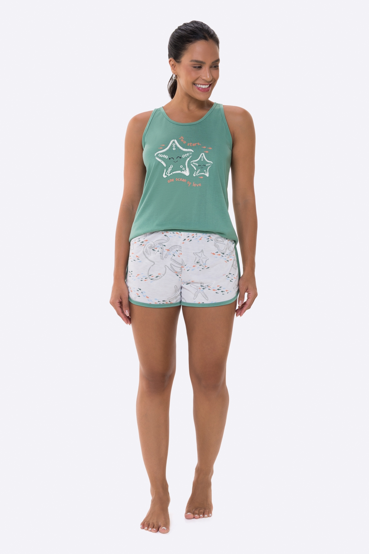 PIJAMA FEMININO COM REGATA FUNDO DO MAR VERDE FAMÍLIA - BOCEJINHO