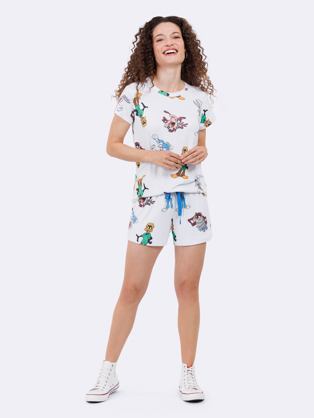 PIJAMA FEMININO CURTO COM MANGA BRANCO LOONEY TUNES - VEGGI