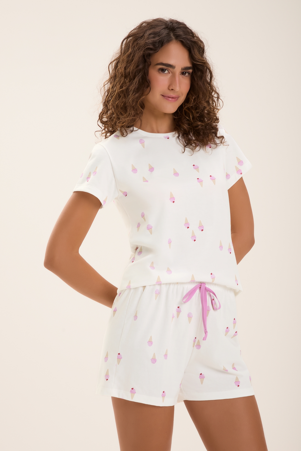 PIJAMA FEMININO CURTO COM MANGA SORVETE ROSA - COR COM AMOR