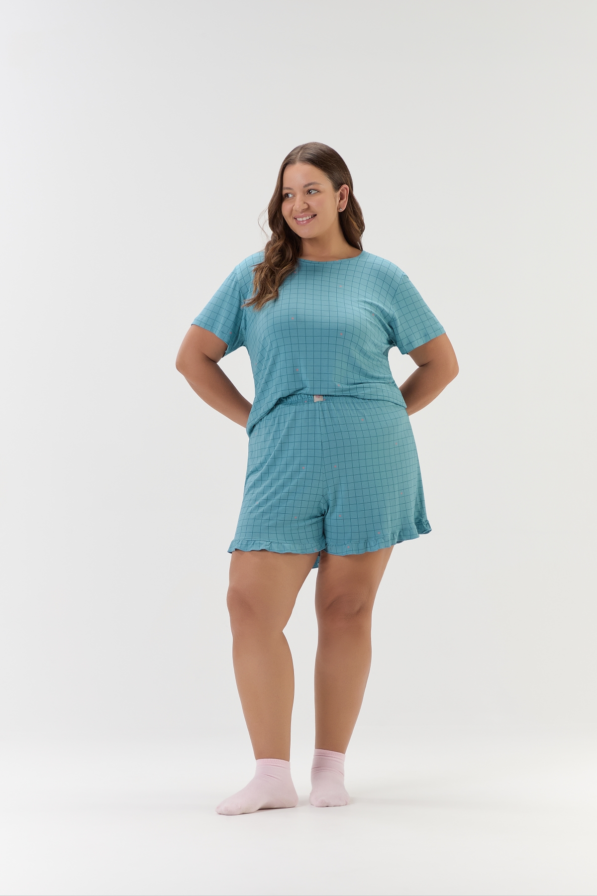 PIJAMA FEMININO CURTO COM MANGA VERDE XADREZ FAMIÍLIA PLUS SIZE - COR COM AMOR