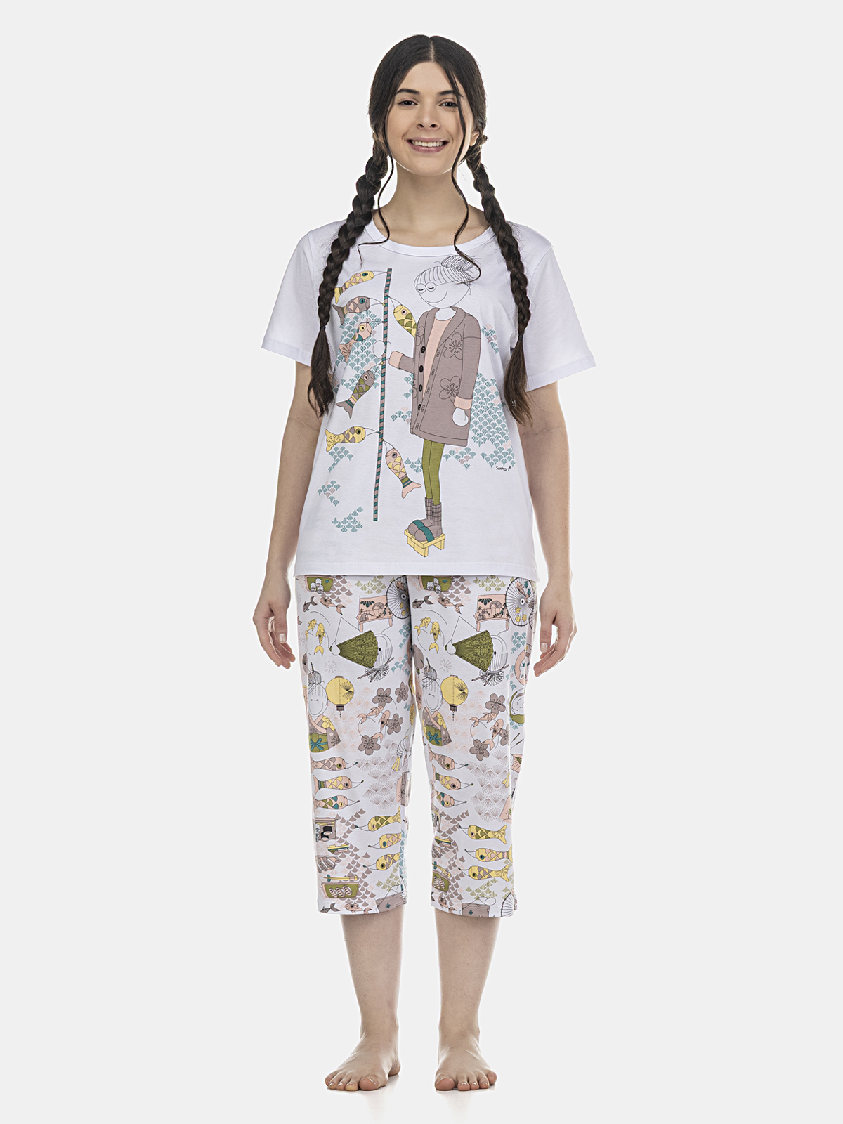 PIJAMA FEMININO MANGA CURTA E CALÇA CAPRI BRANCO - SONHART