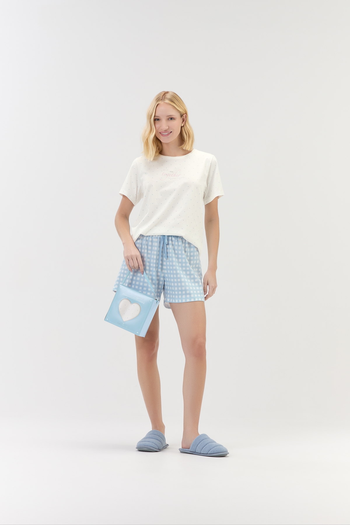 PIJAMA FEMININO MANGA CURTA E SHORT AZUL XADREZ FAMÍLIA - COR COM AMOR