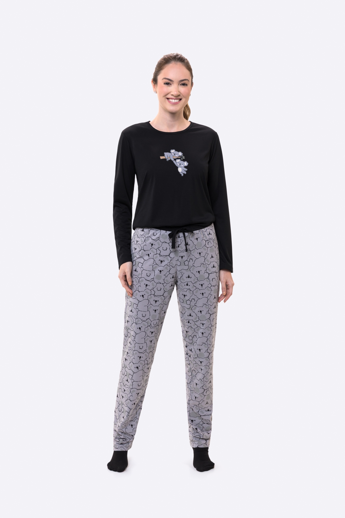 PIJAMA FEMININO MANGA LONGA E CALÇA PRETO COALA - BOCEJINHO