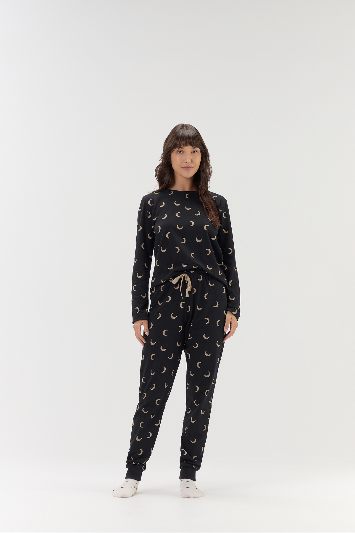PIJAMA FEMININO MANGA LONGA E CALÇA PRETO LUA - COR COM AMOR