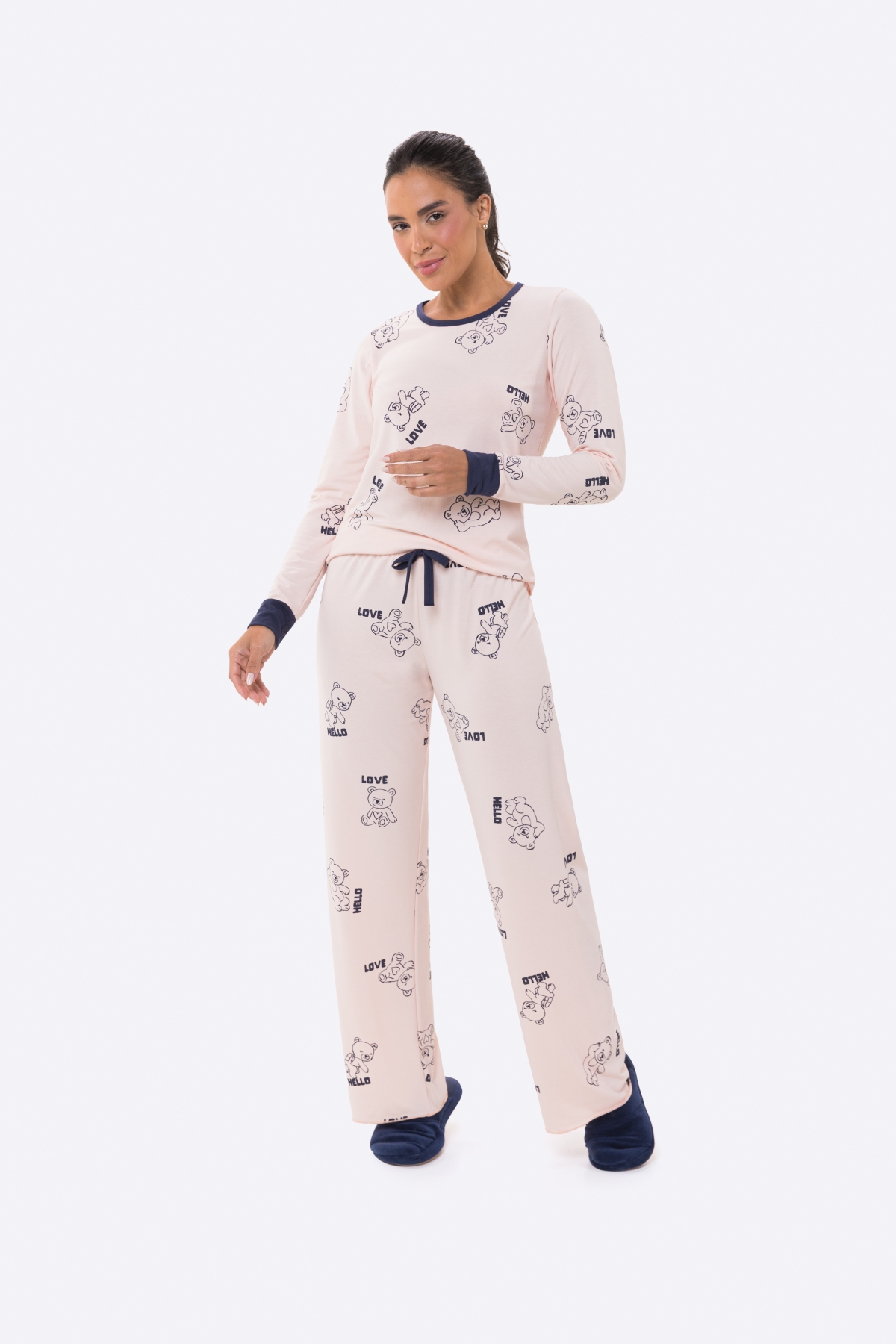 PIJAMA FEMININO MANGA LONGA E CALÇA ROSA BEBÊ URSOS - BOCEJINHO