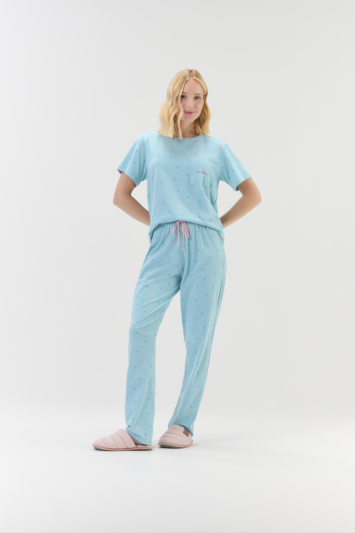 PIJAMA FEMININO MANGA LONGA E CALÇA VERDE CORAÇÃO - COR COM AMOR