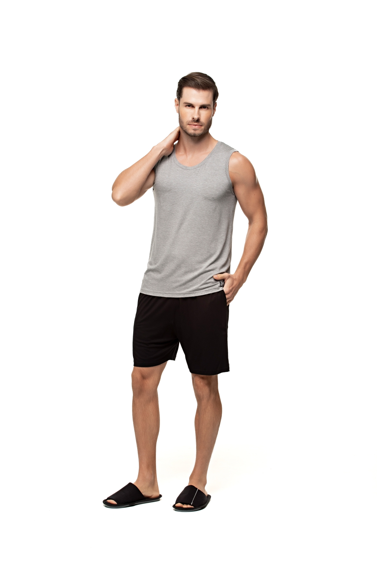 Conjunto pijama masculino curto confeccionado em malha macia, ideal para garantir noites de sono com conforto e praticidade. A regata na cor cinza mescla possui modelagem reta e leve, proporcionando frescor e total liberdade de movimentos, perfeita para os dias mais quentes. A bermuda preta de toque suave traz visual moderno e versátil, além de cós elástico com cordão interno, que garante ajuste seguro e confortável. Perfeito para quem busca bem-estar, leveza e estilo na hora de dormir ou relaxar, este pijama combina simplicidade elegante e comodidade em cada detalhe. |