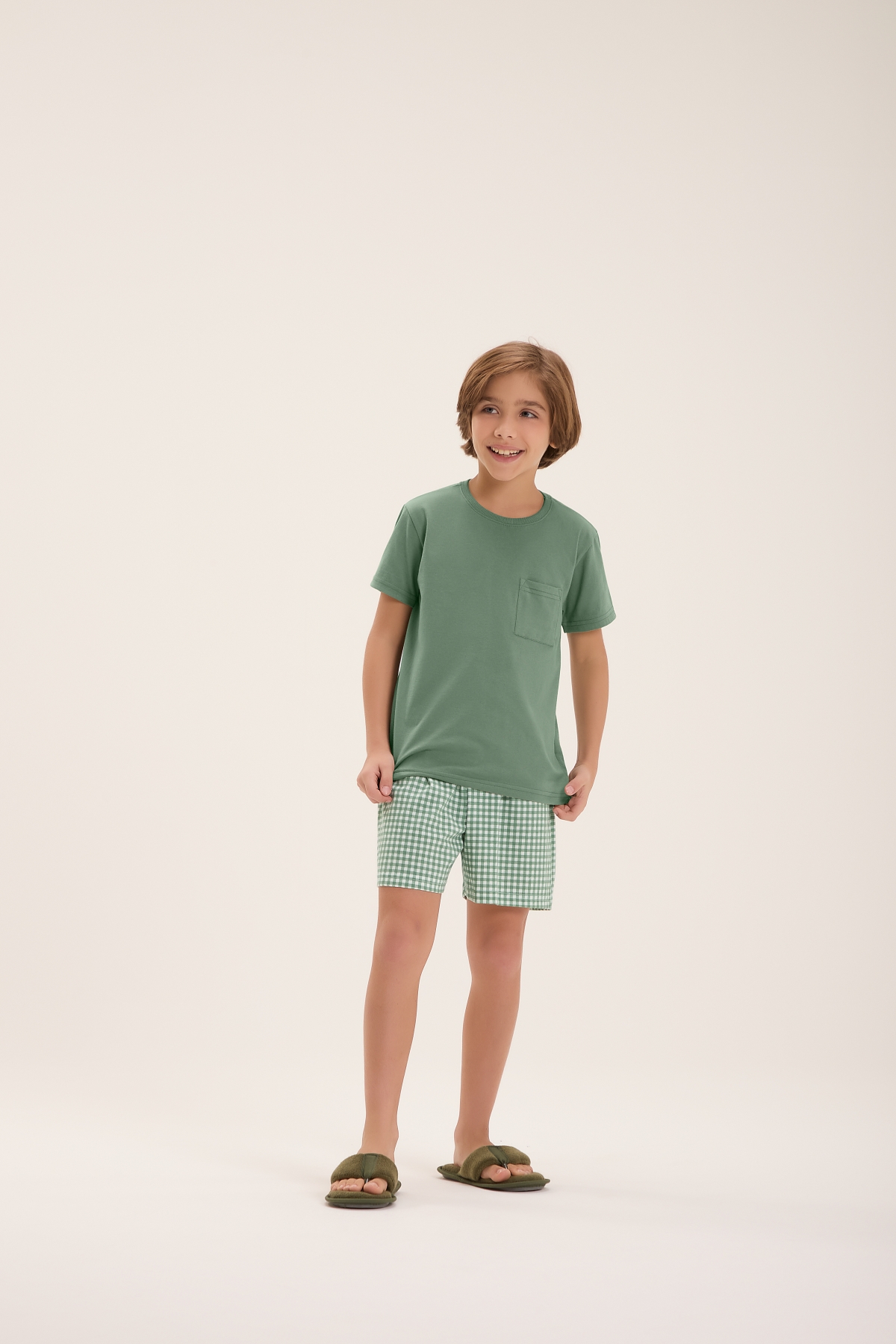 PIJAMA MASCULINO INFANTIL CURTO XADREZ VERDE FAMÍLIA - COR COM AMOR