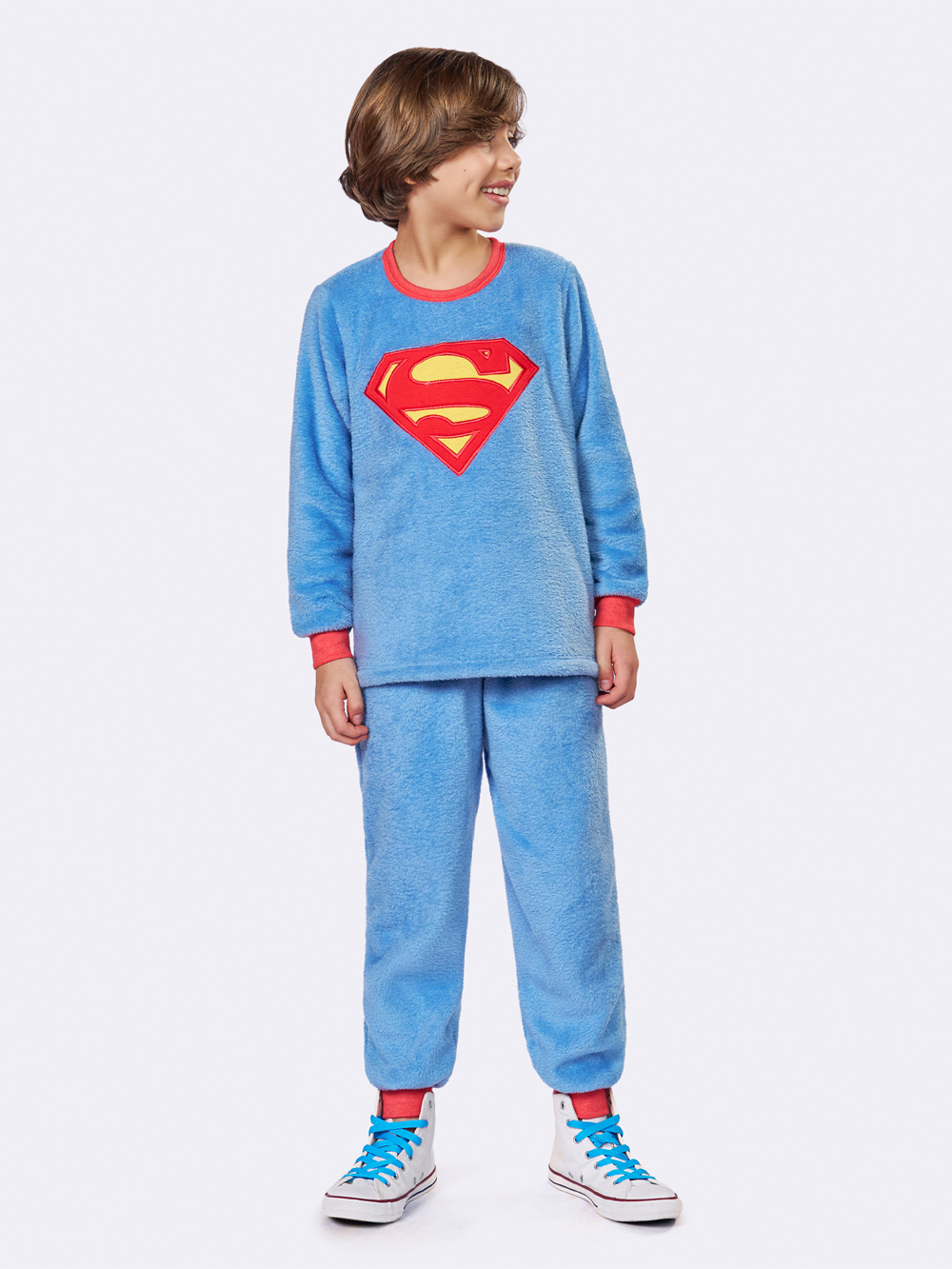 PIJAMA MASCULINO INFANTIL MANGA LONGA E CALÇA AZUL SUPERMAN - VEGGI