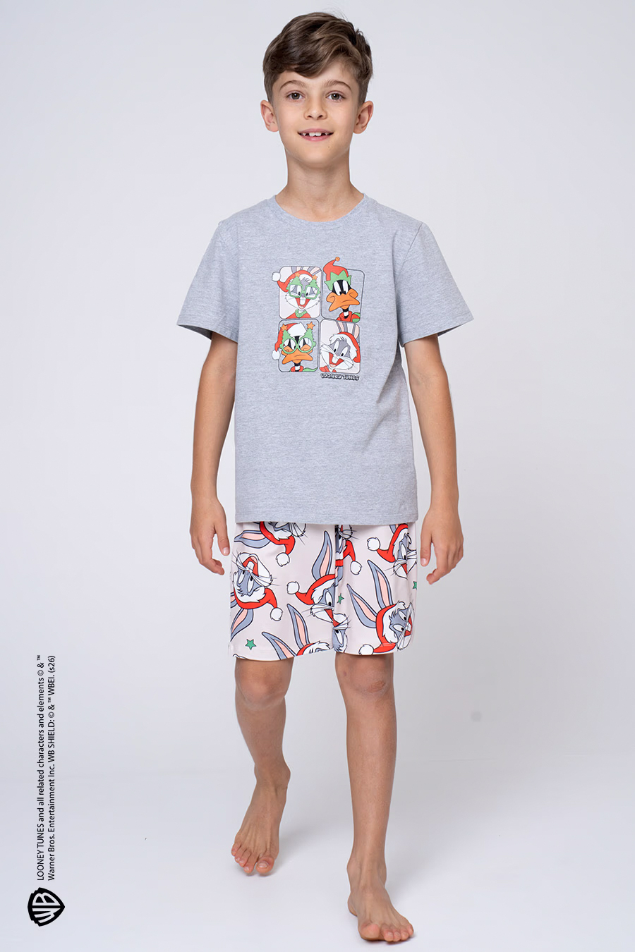 Perfeito para entrar no clima natalino com conforto e diversão! Este pijama masculino juvenil do Pernalonga é ideal para noites de descanso, confraternizações em casa e para combinar com toda a família no Natal. Confeccionado em 100% algodão, proporciona toque macio, respirabilidade e bem-estar durante toda a noite. A blusa em tom cinza mescla possui estampa divertida e colorida do Pernalonga em clima de Natal. O shorts vem com estampa rotativa do personagem usando gorro de Papai Noel, com estrelas e detalhes natalinos que deixam o visual ainda mais especial. A modelagem é soltinha e confortável, com caimento leve que garante liberdade de movimento, perfeito para dormir, brincar ou curtir momentos em família. E o melhor: faz parte de um coordenado para toda a família, perfeito para fotos natalinas, momentos especiais e presentes cheios de carinho. |