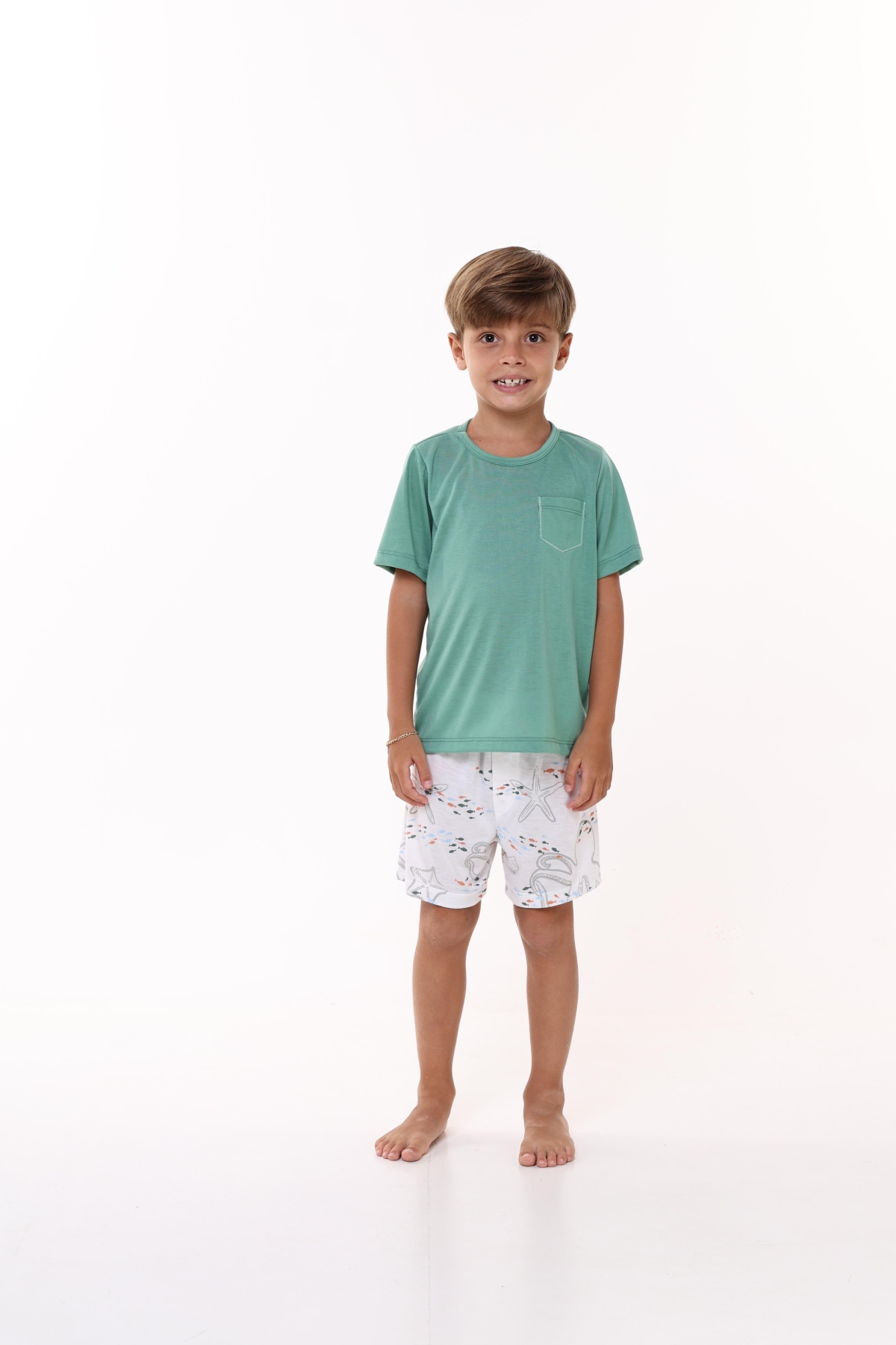 PIJAMA MASCULINO JUVENIL CURTO FUNDO DO MAR VERDE FAMÍLIA - BOCEJINHO