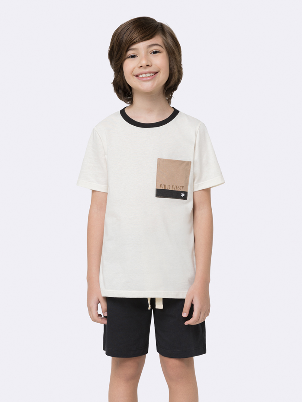 Com design moderno e muito confortável, o pijama infantil masculino manga curta com bermuda Wild West é perfeito para os pequenos que gostam de se sentir bem em casa. A bermuda preta com cós ajustável proporciona liberdade de movimento para dormir ou brincar. |