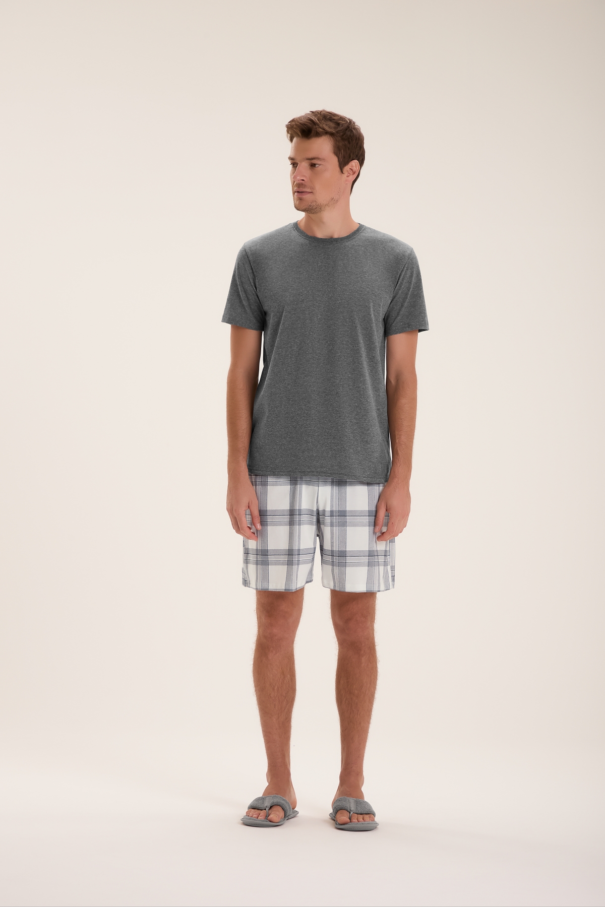 PIJAMA MASCULINO MANGA CURTA COM BERMUDA XADREZ CINZA - COR COM AMOR