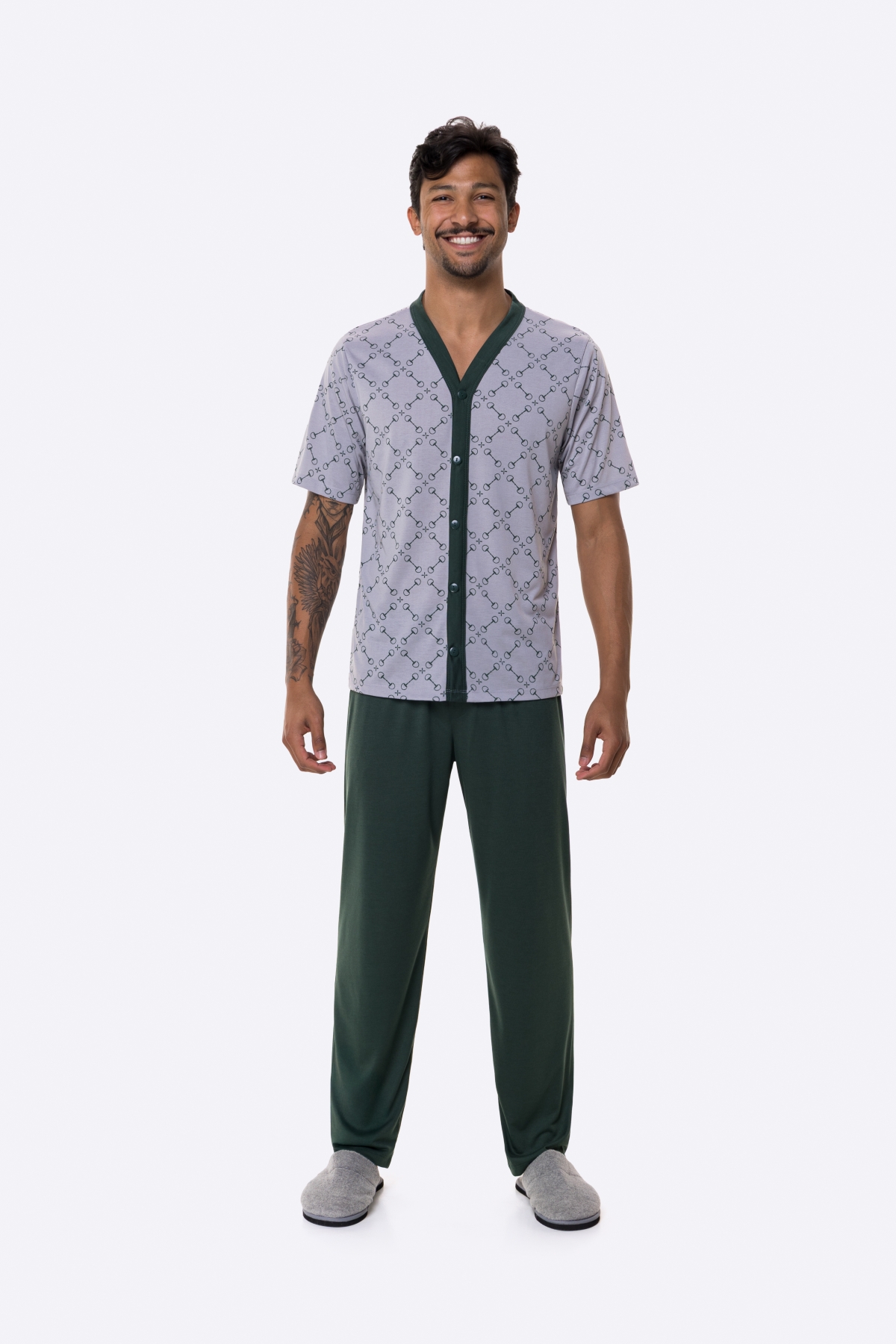 PIJAMA MASCULINO MANGA CURTA COM BOTÕES E CALÇA VERDE - BOCEJINHO