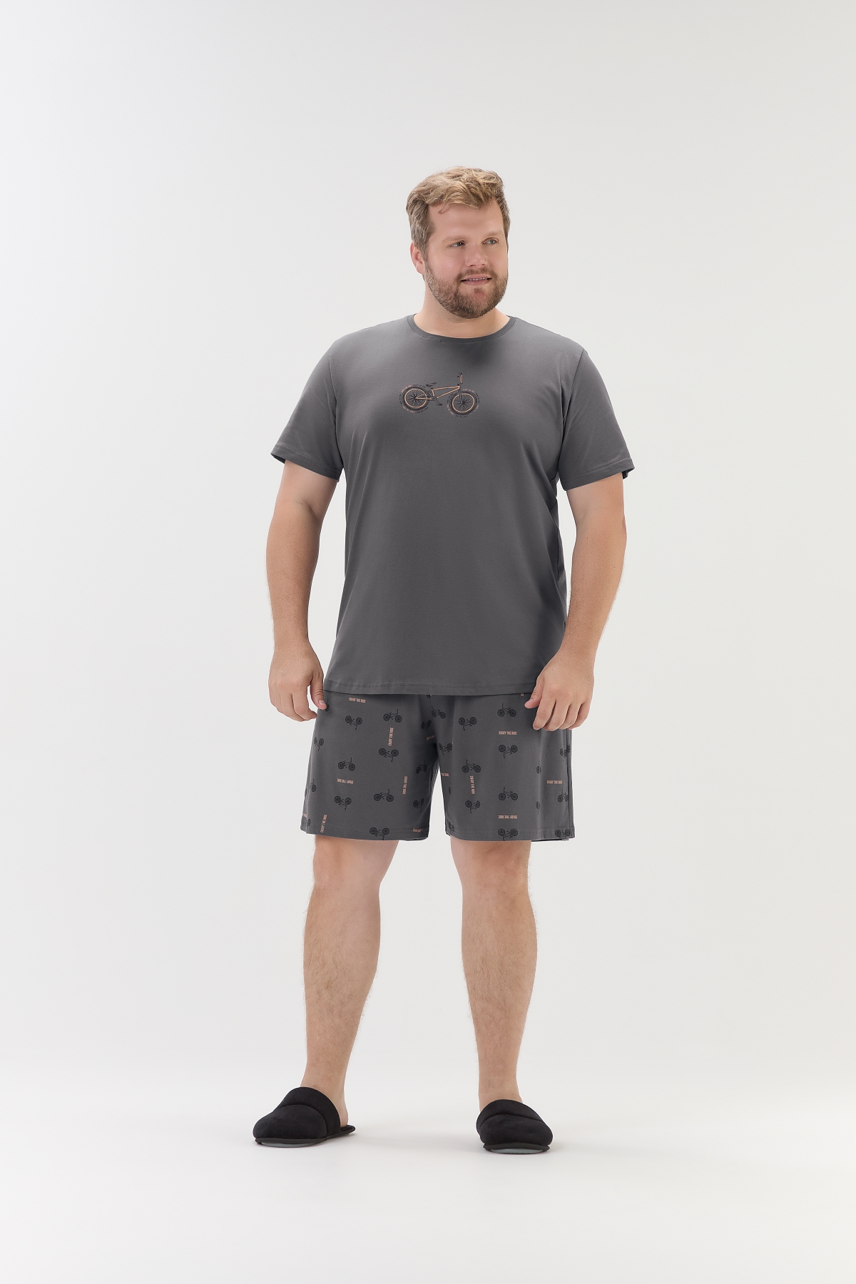PIJAMA MASCULINO MANGA CURTA E BERMUDA CHUMBO BIKE PLUS SIZE- COR COM AMOR