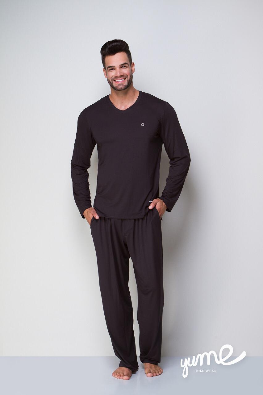 PIJAMA MASCULINO MODAL MANGA LONGA E CALÇA PRETO - YUME