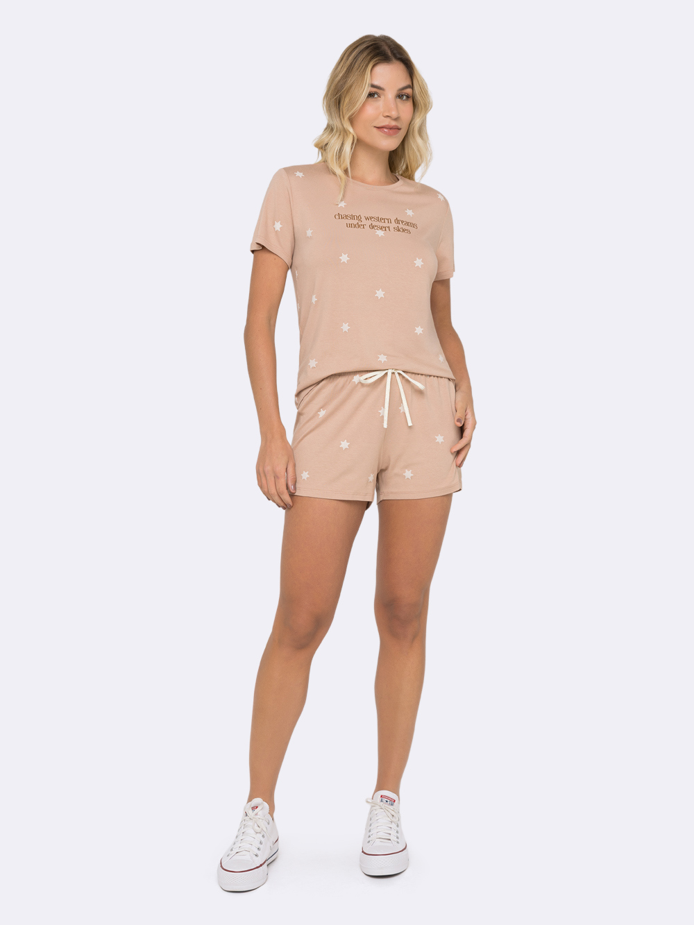 PIJAMA FEMININO MANGA CURTA E SHORT MARROM ESTRELAS - VEGGI