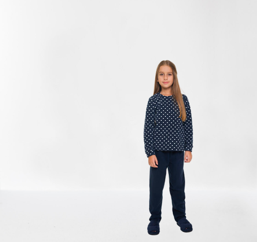 PIJAMA INFANTIL FEMININO DE MANGA LONGA EM SOFT CORACAO MARINHO