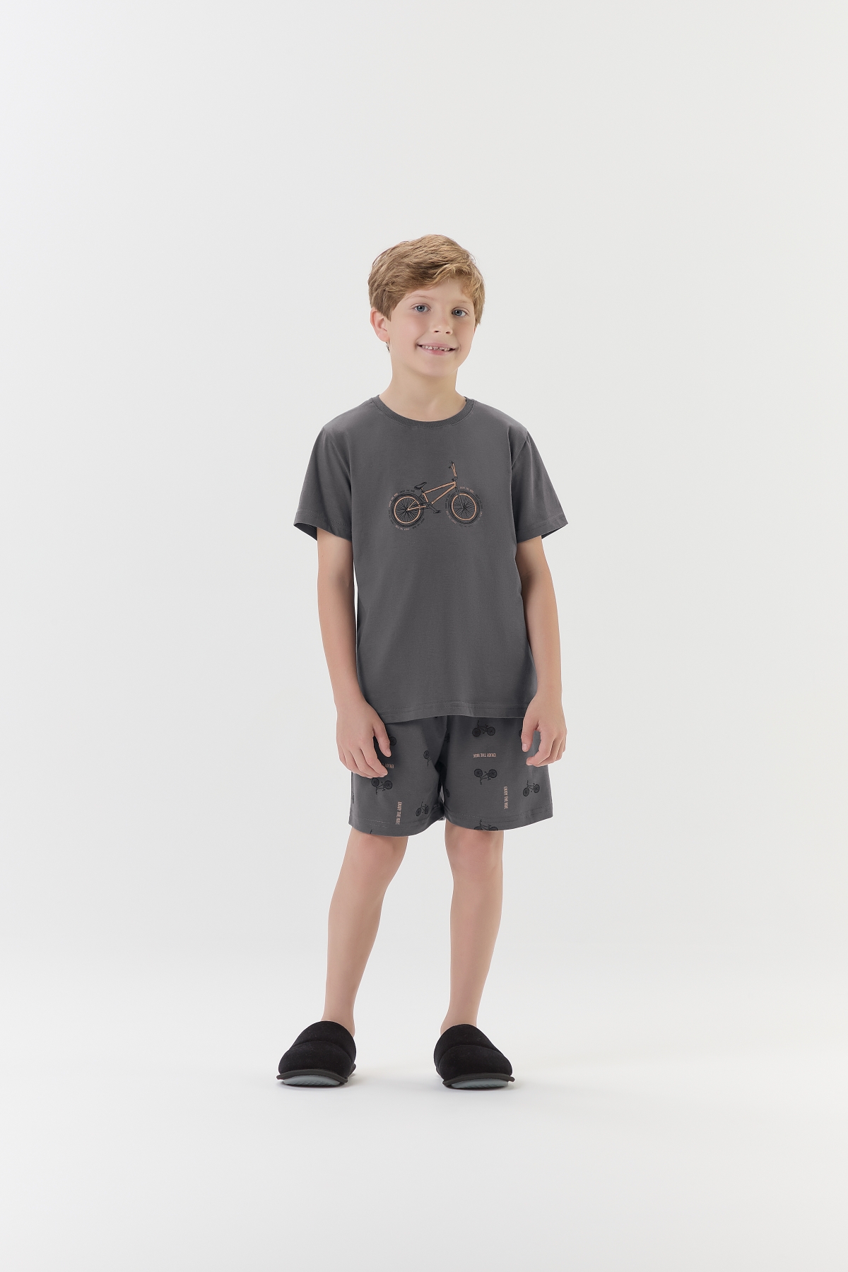 PIJAMA MASCULINO JUVENIL CURTO COM MANGA CHUMBO BIKE - COR COM AMOR